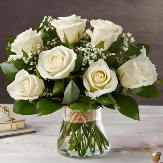 This white rose and gypsophila bouquet fits many different special moments. It is a top choice for an International Women’s Day flower gift. The clean colors also make it a great Roses and Gypsophila Bridal Bouquet for weddings. Give this gift for birthdays, anniversaries, or to say thank you. It works well to wish someone a quick recovery. You can also use it as simple, beautiful home decoration.