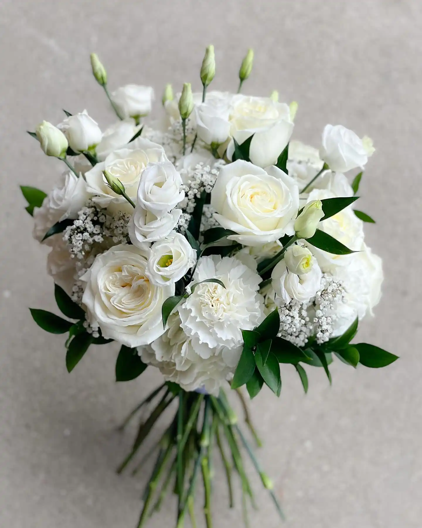 The White Rose Lisianthus Bouquet is a luxurious floral arrangement. That showcases the purity and elegance of white roses, white lisianthus, and white waxflower. Furthermore, this bouquet’s combination of soft whites and creamy hues, along with the gentle touch of eucalyptus, makes it ideal for expressing love, purity, and new beginnings. Consequently, whether it’s for a wedding, bridal shower, baby shower, or sympathy arrangement, this bouquet adds a heartfelt touch to any occasion.
