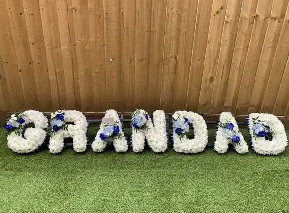White and Blue “Grandad” Funeral Flower Tribute