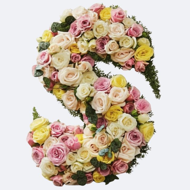 This arrangement is a beautiful, personal final goodbye. We present the Luxury Pastel Rose Initial ‘S’ Floral Tribute. It offers comfort and memories of a unique life. This funeral flower letter design uses a bed of multicoloured fragrant roses. The single capital letter ‘S’ is a deeply personal reminder. Expert florists meticulously handcraft this substantial, defined shape. We guarantee 100% fresh, natural blooms for lasting beauty.