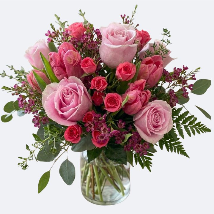 Pink Roses and Tulips Bouquet Delivery