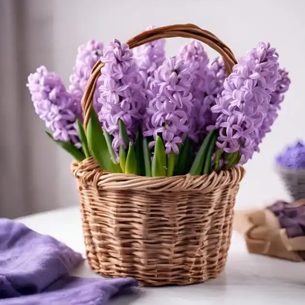 Celebrate with Lilac Hyacinth Flowers in a Basket