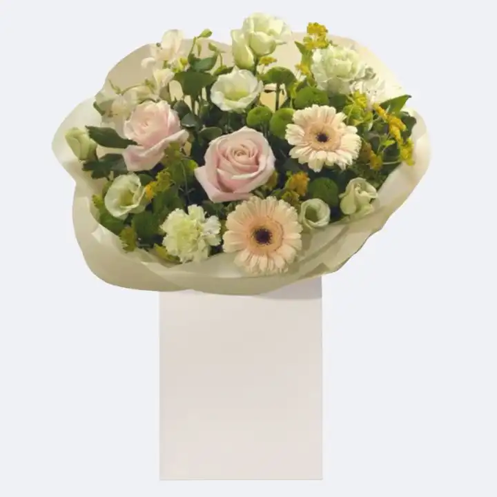 This pastel arrangement brings a soft feel to any space. Expert florists hand-tie every bouquet to look natural. We use organic pink roses and cream lisianthus. These fresh blooms create a calm and elegant mood. They arrive ready to display in a stylish carrier. Every stem looks vibrant and full of life.