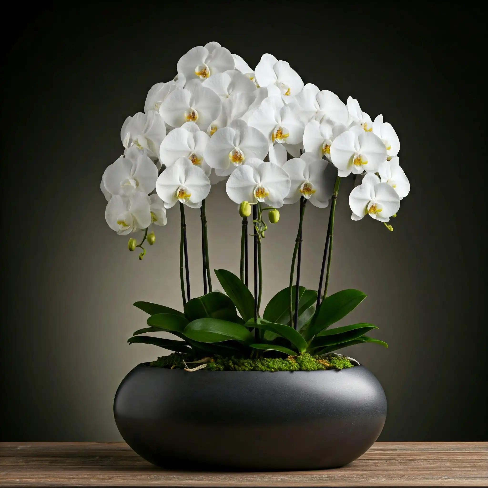 Phalaenopsis orchids are known for their beauty and longevity, making this arrangement perfect for gifts, corporate settings, or as a chic home decor piece. Whether you’re celebrating an anniversary, sending congratulations, or simply adding a touch of elegance to a space, this planter will make a lasting impression.