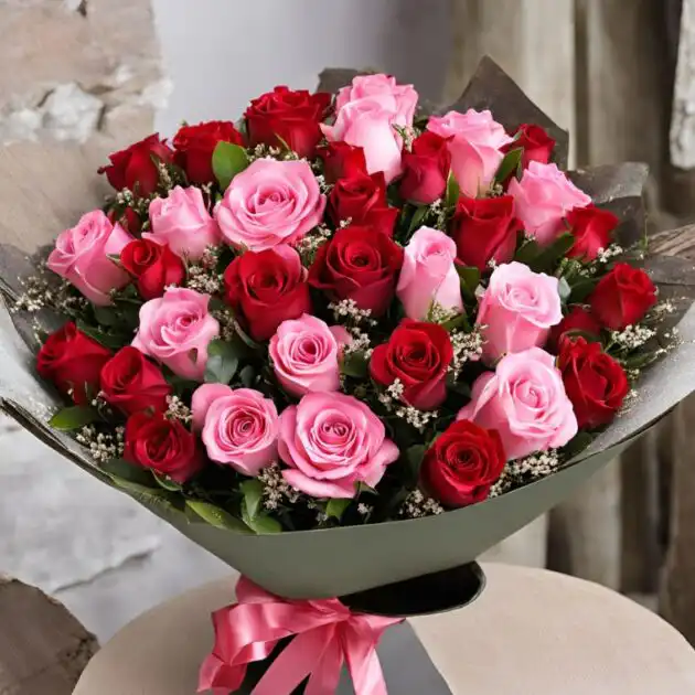 Red and Pink Rose Round Bouquet UK – A Stunning Floral Gift for Every Occasion