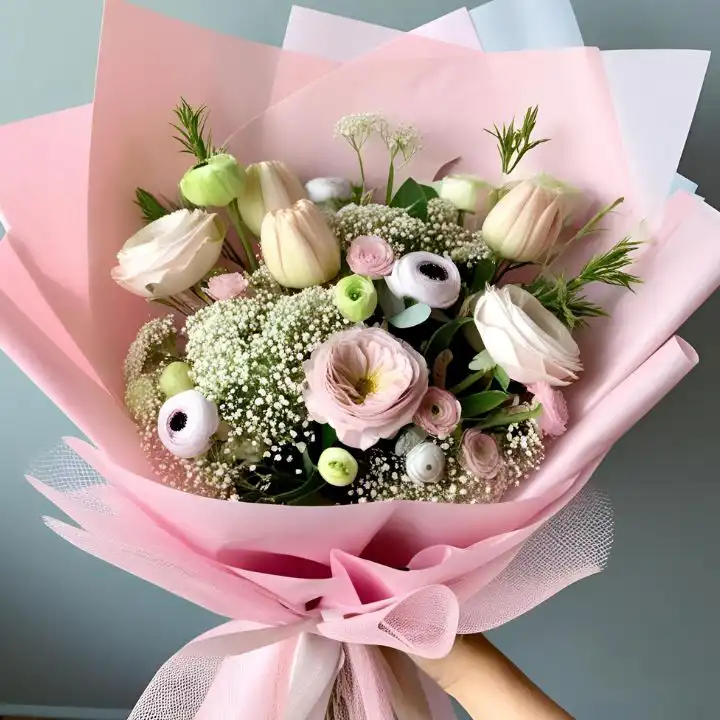 Ranunculus Flower Bouquet in Pink and White