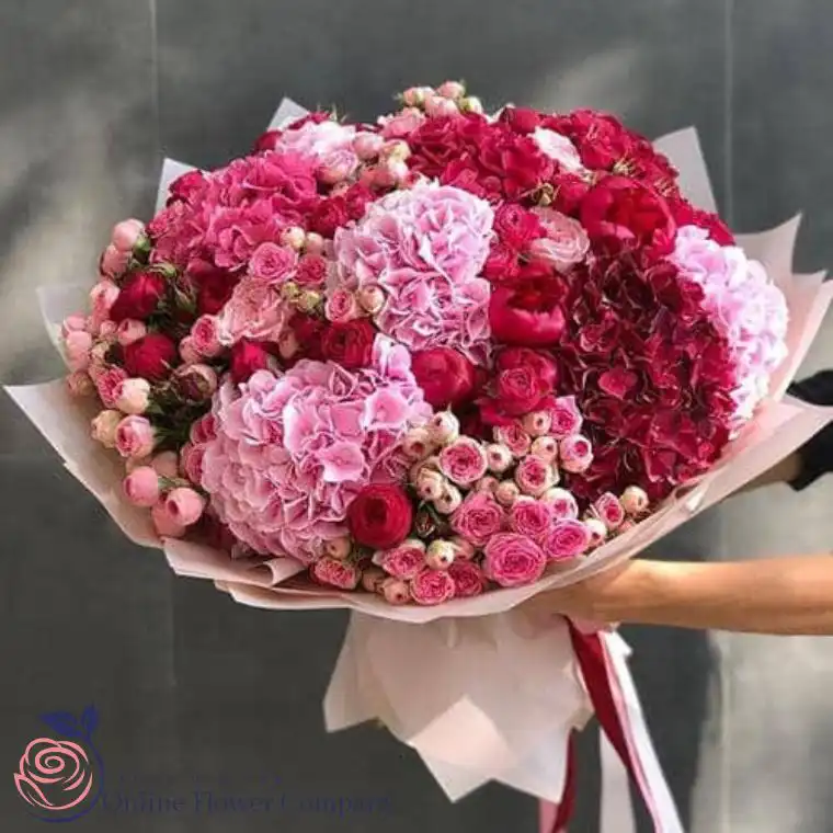 The Pink Peony Bouquet combines the beauty of pink roses, hydrangeas, and ranunculus, creating an elegant and romantic arrangement perfect for a variety of occasions. Whether celebrating a birthday, or anniversary or expressing affection on Valentine’s Day or Mother’s Day, this bouquet is sure to leave a lasting impression. The soft, vibrant shades of pink create a warm and loving atmosphere, making it ideal for those special moments. The flowers are arranged in a large, lush bouquet, wrapped delicately in pink tissue paper for an added touch of sophistication. With our guarantee of freshness and next-day delivery, you can trust that this stunning bouquet will arrive on time and in perfect condition. We also offer order tracking and delivery confirmation to give you peace of mind with every purchase.