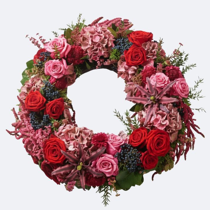 Bring vibrant groups of blooms to your home. This stunning Autumn Berry Wreath offers heartfelt emotion. It is a statement tribute that celebrates a vivacious life. Expert florists handcraft this luxury arrangement. We use only the freshest, highest-quality natural blooms. It has a symbolic circular design.