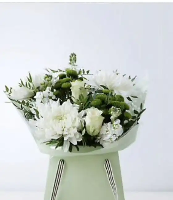 The fresh combination of white and green hues exudes serenity and warmth, making it a thoughtful gift for loved ones. Also, the flowers are arranged loosely, hand-tied, and wrapped in green tissue paper, giving the bouquet a charming, rustic look. We also offer the convenience of next-day delivery across the UK, ensuring your flowers arrive fresh and ready to brighten someone’s day. Enjoy the extra benefits of on-time delivery, order tracking, and excellent customer service with every purchase.