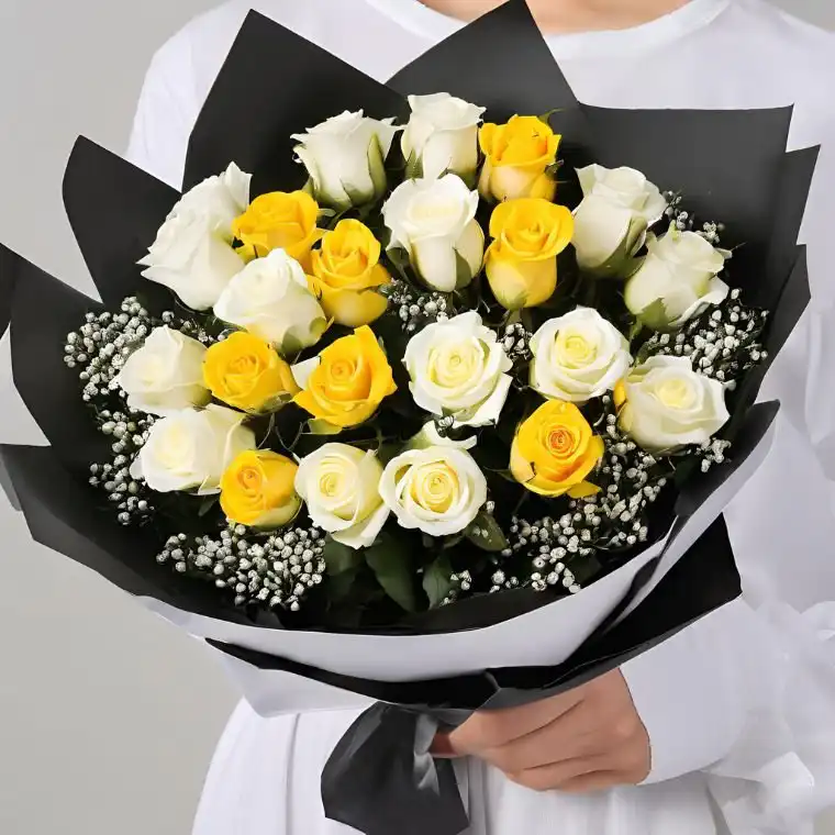 This yellow and white rose bouquet wedding style works for many events. It is a great choice for International Women’s Day. Use it as a Valentine gift for someone special. It also suits birthdays, anniversaries, or home decoration. This mix of colors expresses thanks or helps someone feel better.